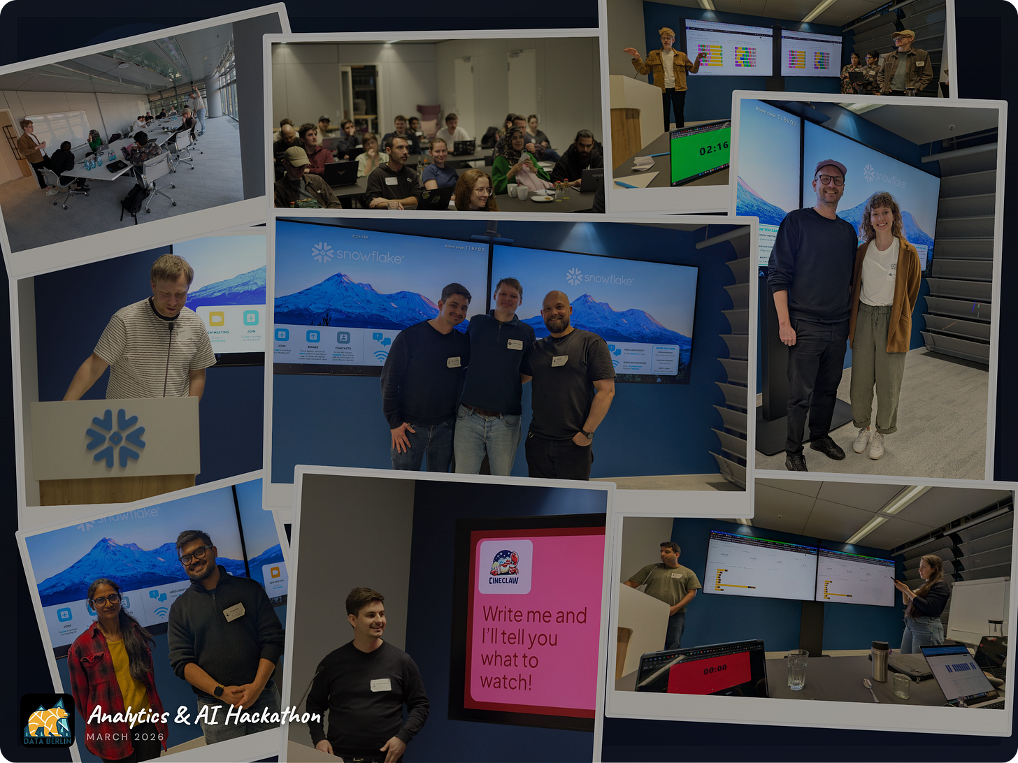 Hackathon win for the Data Berlin community: huge turnout, strong projects, and real builder energy from start to finish. Thanks to everyone who joined, shipped, mentored, and cheered teams on. For us was a great experience.